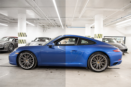 Vous souhaitez améliorer la qualité de vos photos pour que personne ne sache que vous les avez prises avec un iPhone 4 dans un garage mal éclairé? Le forfait de base inclut l’amélioration des photos de vos véhicules pour leur donner un effet professionnel.